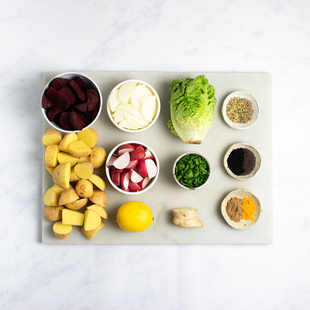 This beautiful collection of spices works super well with nutrient rich beets and potatoes. A lovely side dish or light meal. This beautiful collection of spices works super well with nutrient rich beets and potatoes. A lovely side dish or light meal.
