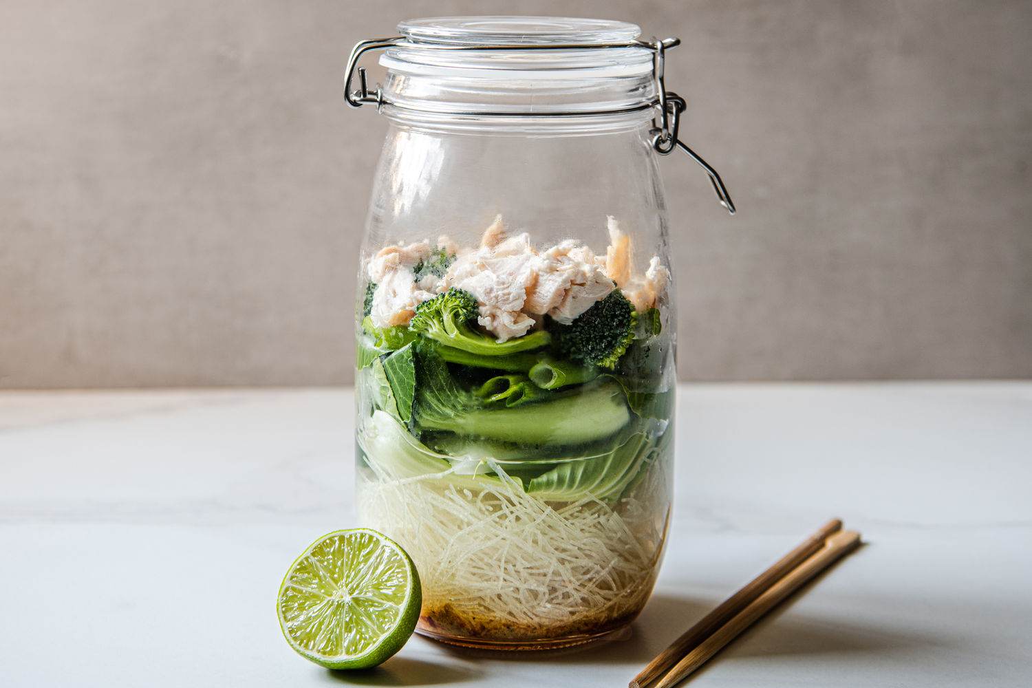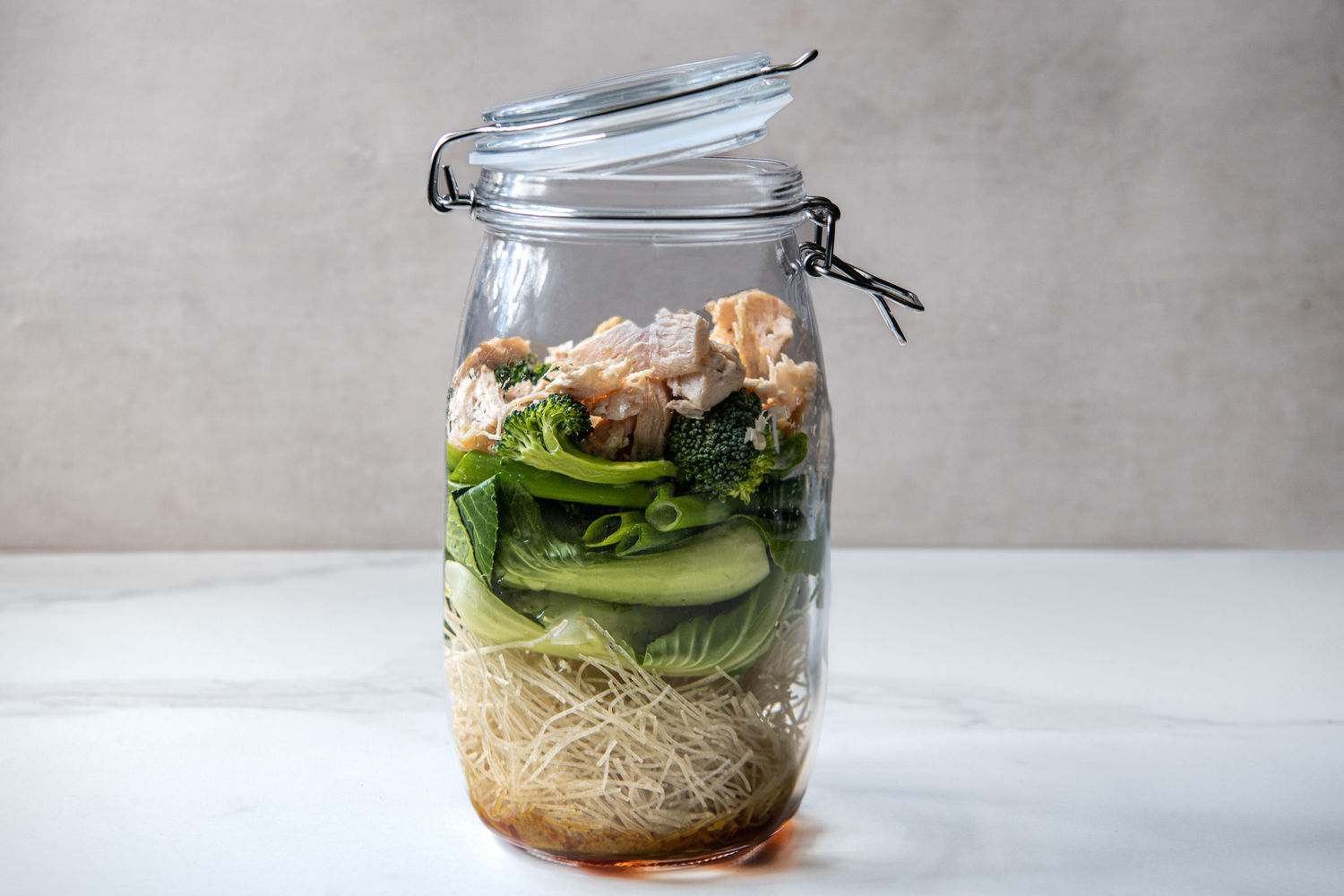 Spicy Chicken Noodle Jar with Broccoli and Pak Choy