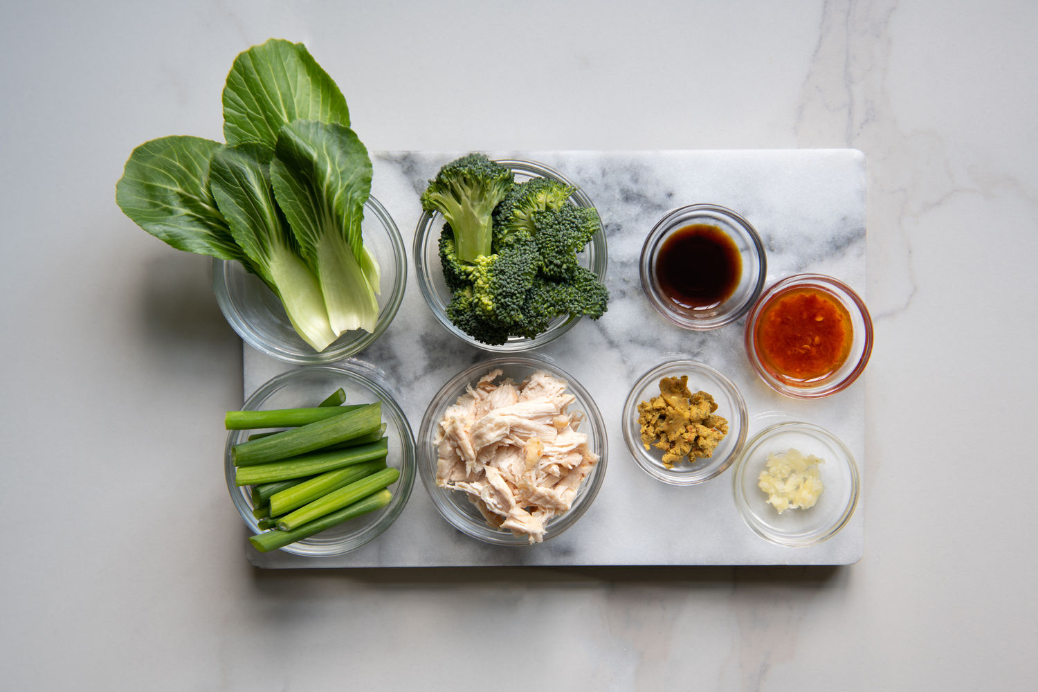 This quick work lunch meal is great if you have leftover roast chicken and you need something quick to eat on the go. We've packed it with green veget...ables and a simple flavour mix for sorting the week in a hurry! Read more This quick work lunch meal is great if you have leftover roast chicken and you need something quick to eat on the go. We've packed it with green vegetables and a simple flavour mix for sorting the week in a hurry!