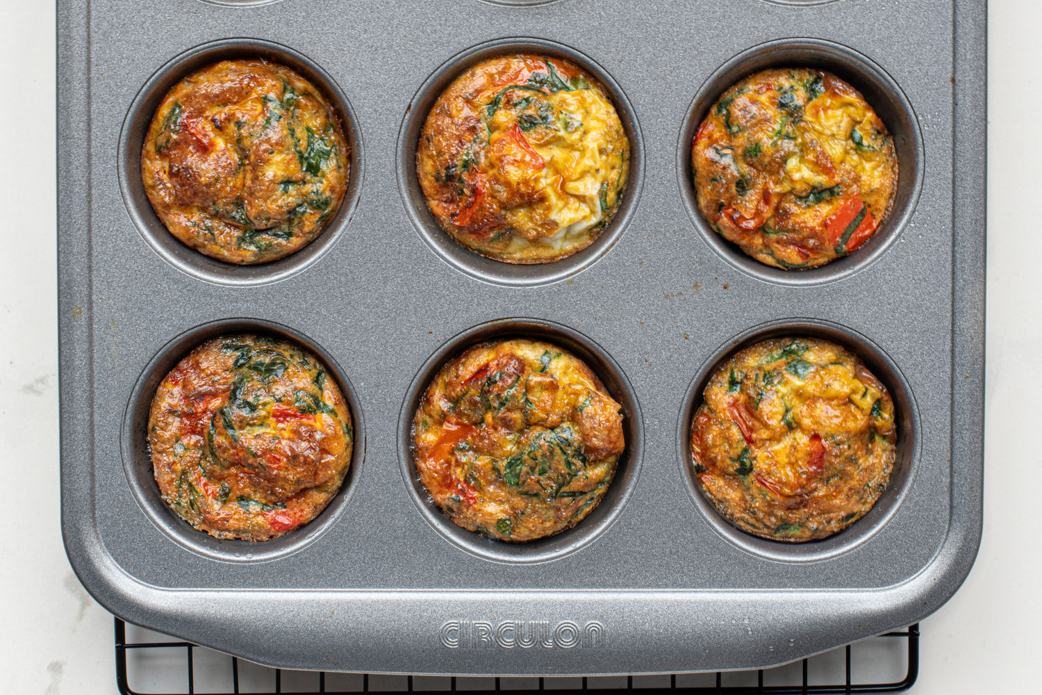 Pour into your prepared muffin tin and cook for 18-20 minutes, until set and lightly golden. Allow to cool before serving.