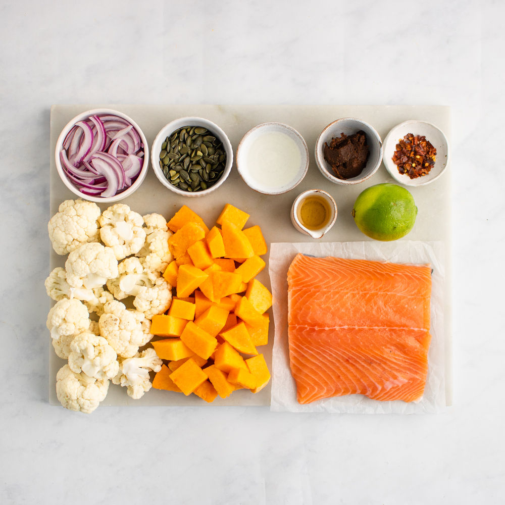 Squash and Salmon Tray with Miso Chilli