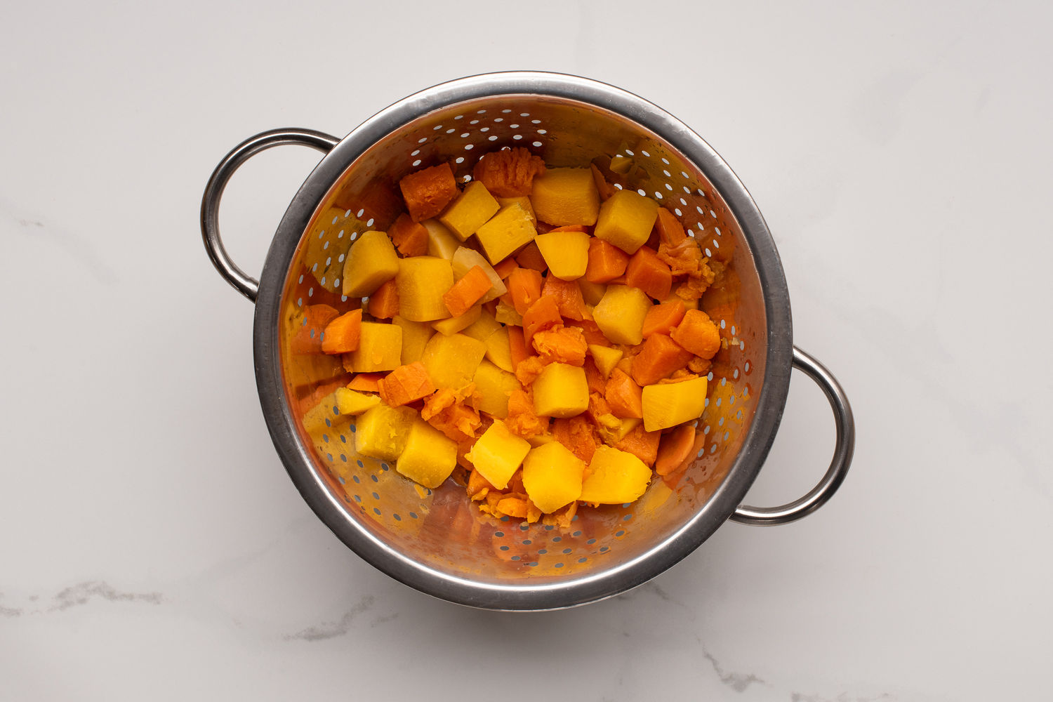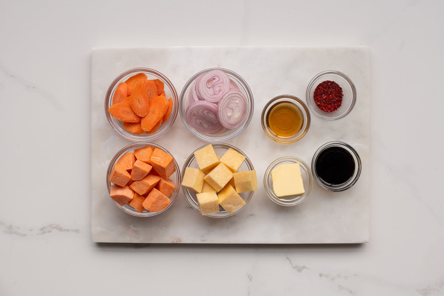This side dish deserves to be front and centre at your next dinner party! Creamy and comforting mixed roots are topped with lightly spicy and deeply s...avoury caramelised shallots. Read more This side dish deserves to be front and centre at your next dinner party! Creamy and comforting mixed roots are topped with lightly spicy and deeply savoury caramelised shallots.