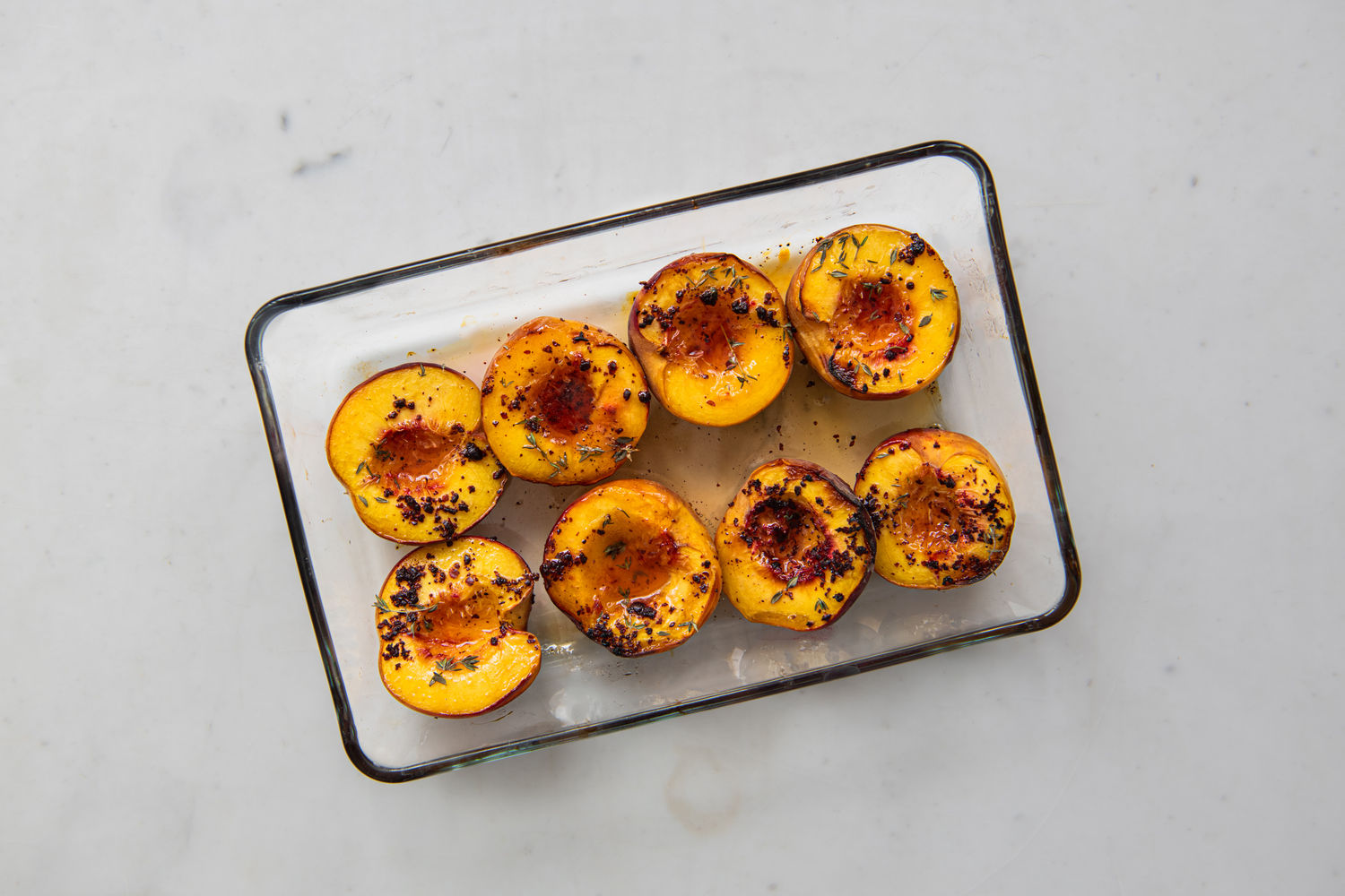 Roasting the vitamin C rich peaches make them naturally super sweet, whilst the addition of zingy sumac and fragrant thyme adds a slightly savoury twi...st to this healthy dessert. Peaches are great for overall skin health and the yoghurt contains probiotics to maintain healthy gut flora, we think you'll love this one. Read more Roasting the vitamin C rich peaches make them naturally super sweet, whilst the addition of zingy sumac and fragrant thyme adds a slightly savoury twist to this healthy dessert. Peaches are great for overall skin health and the yoghurt contains probiotics to maintain healthy gut flora, we think you'll love this one.