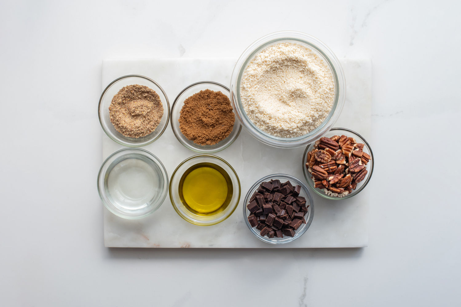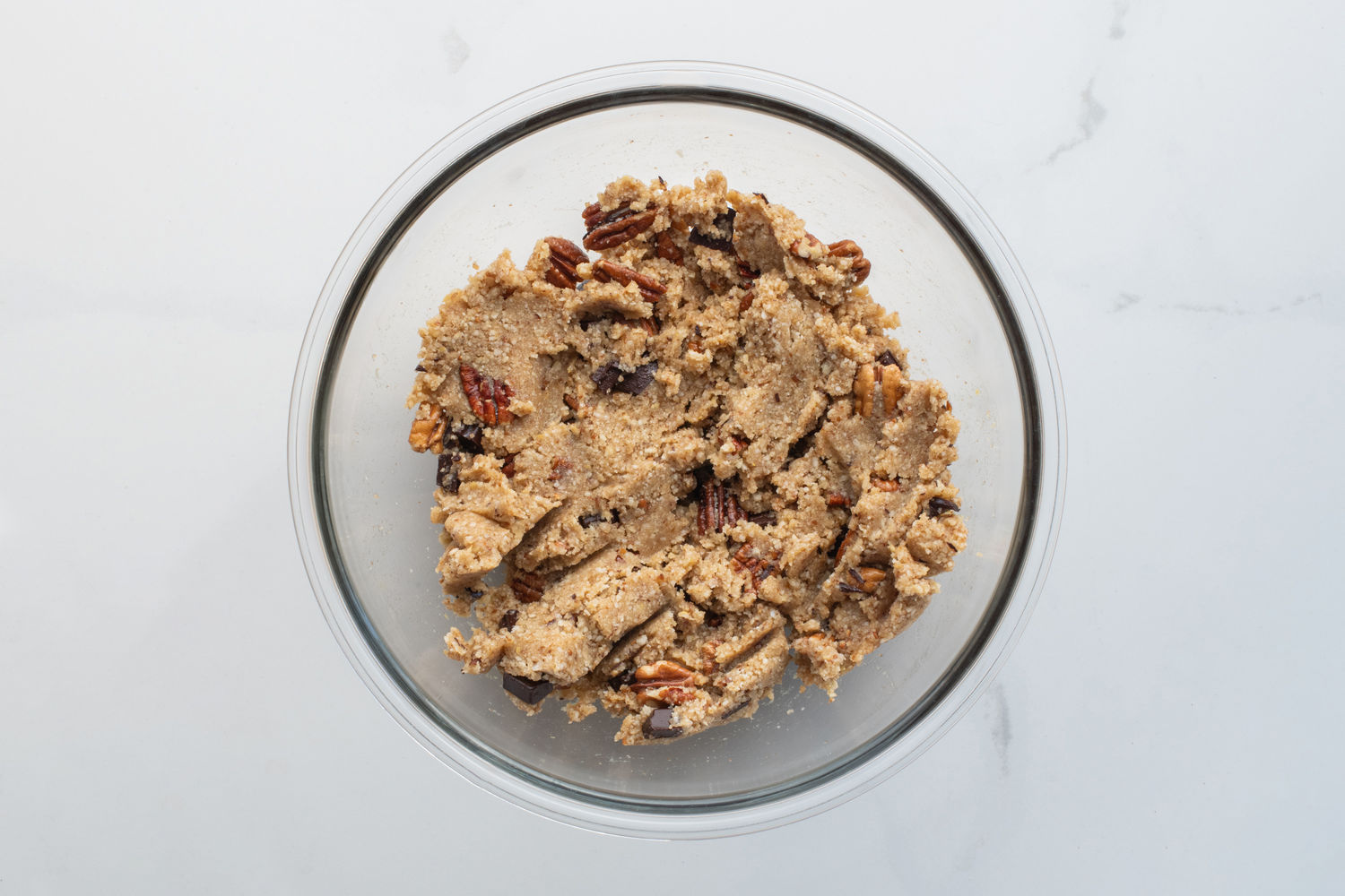 Add the ground almonds, pecan nuts, dark chocolate and a light sprinkle of salt and stir to combine.