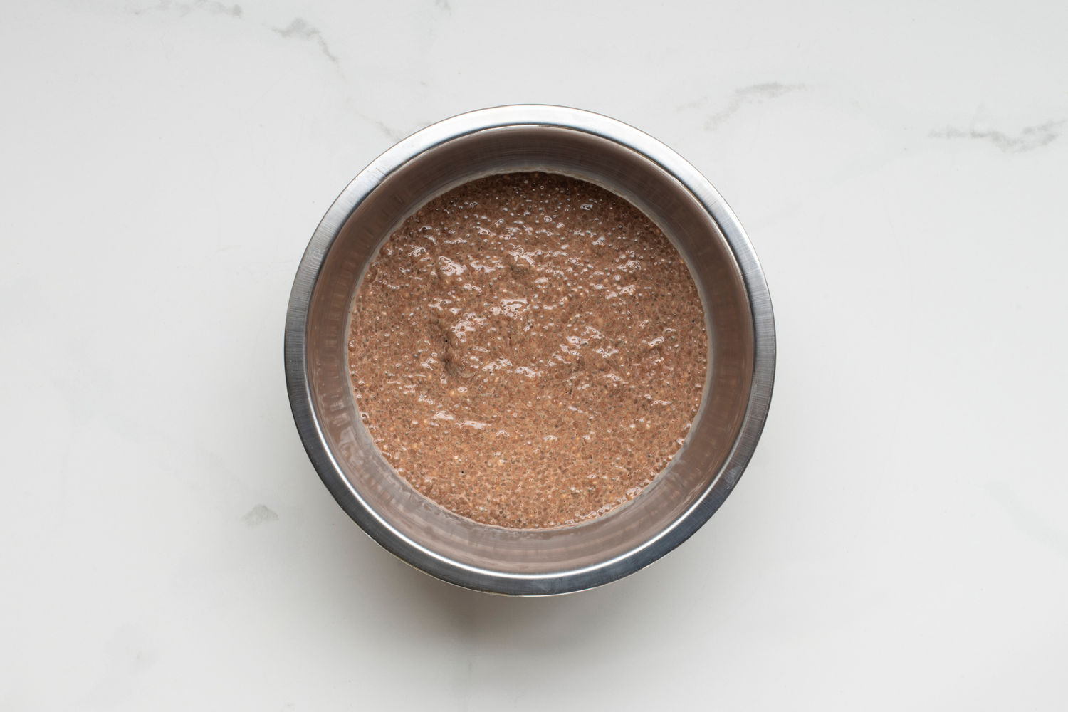 In a jar or bowl, mix chia seeds, cacao, milk, maple syrup, and coffee. Stir well and let sit for 5–10 minutes. Stir again to break up clumps, then let it sit for another 10 minutes, until thickened.