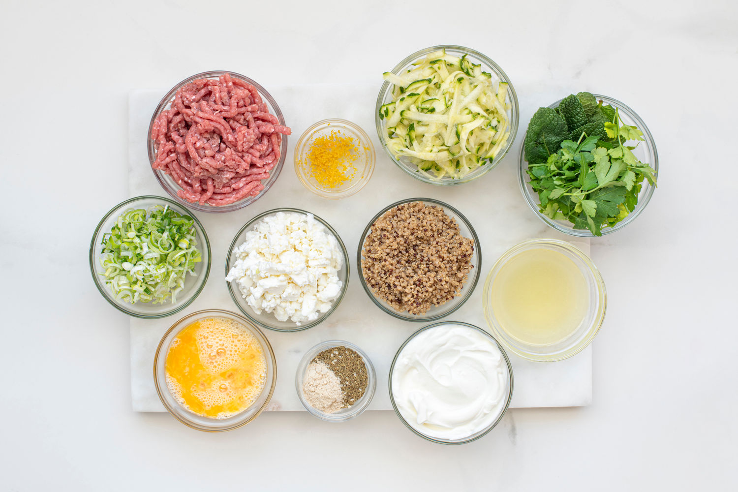 Turkey, Courgette and Feta Meatballs with Yoghurt and Herby Quinoa