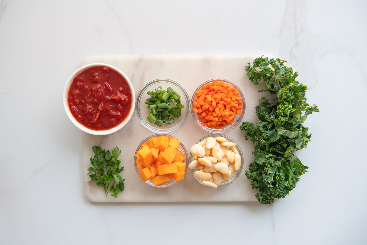 Tuscan Inspired Soup with Squash, Kale and Carrots