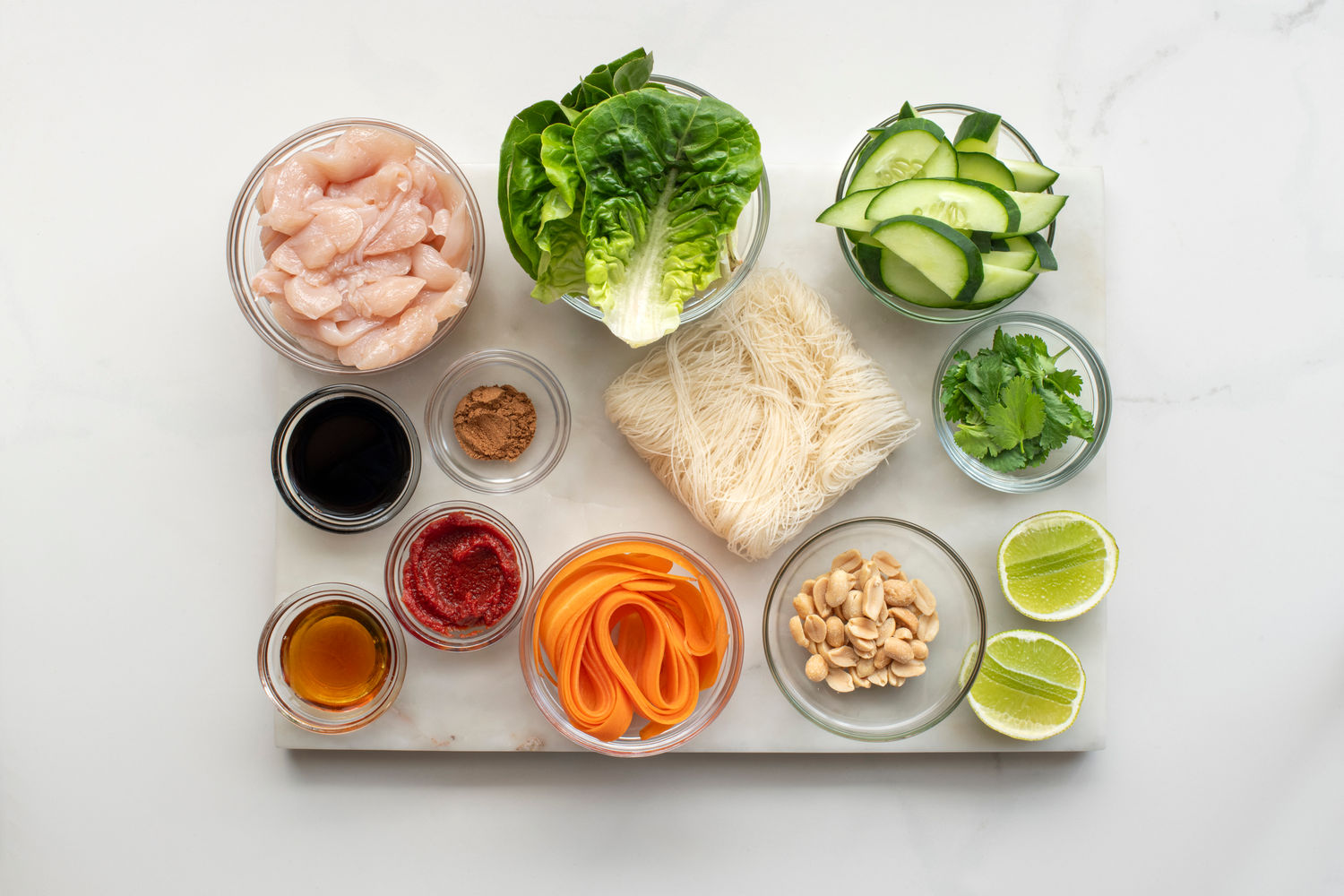 Fresh, vibrant, and full of texture, these Vietnamese-inspired lettuce wraps make a light yet satisfying meal—perfect for warm days when you want some...thing quick and flavourful. Think of them like DIY tacos: everyone can assemble their own wraps at the table, layering in the chicken, noodles, crunchy veg, and toppings. Prefer a bowl? Just serve everything together as a colourful noodle salad.