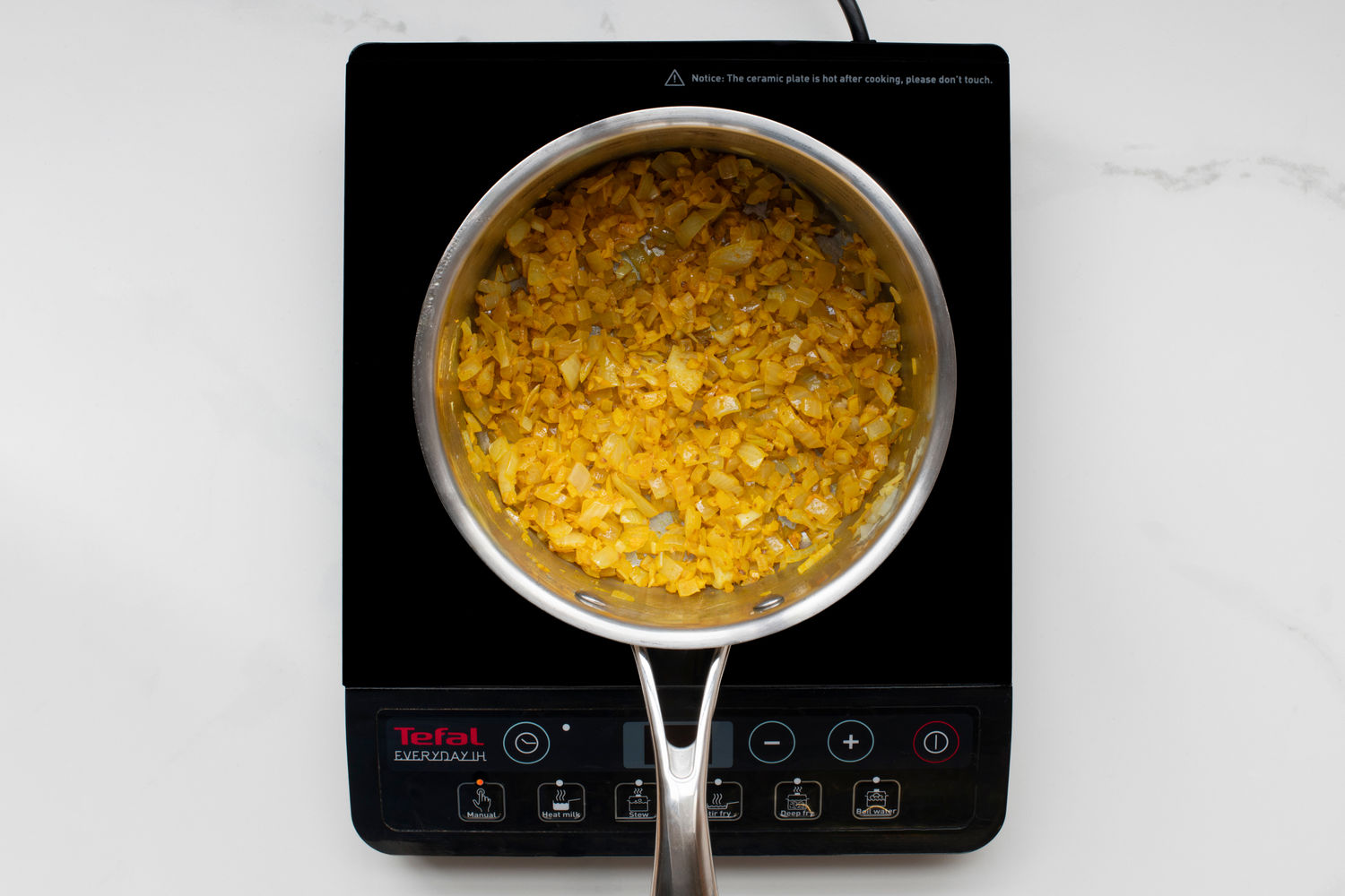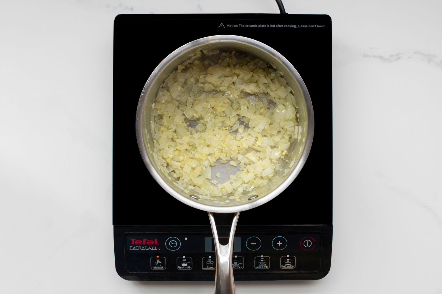 Heat the oil in a saucepan over medium heat. Add the onion, garlic, and ginger, and cook for 3–4 minutes, until softened.